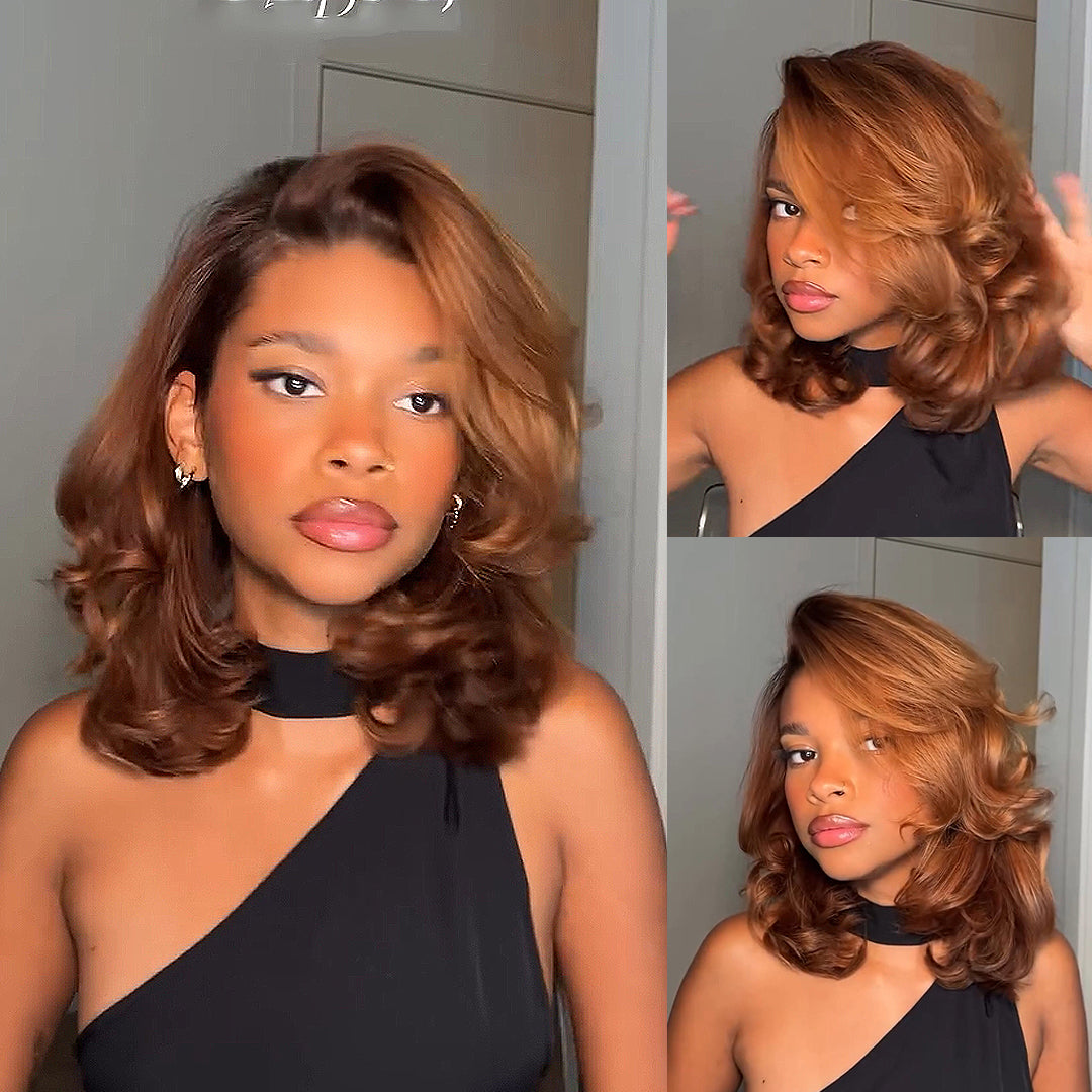• Luxurious Layered Short Ombre Light Brown Glueless 5x5 Lace Closure Wig