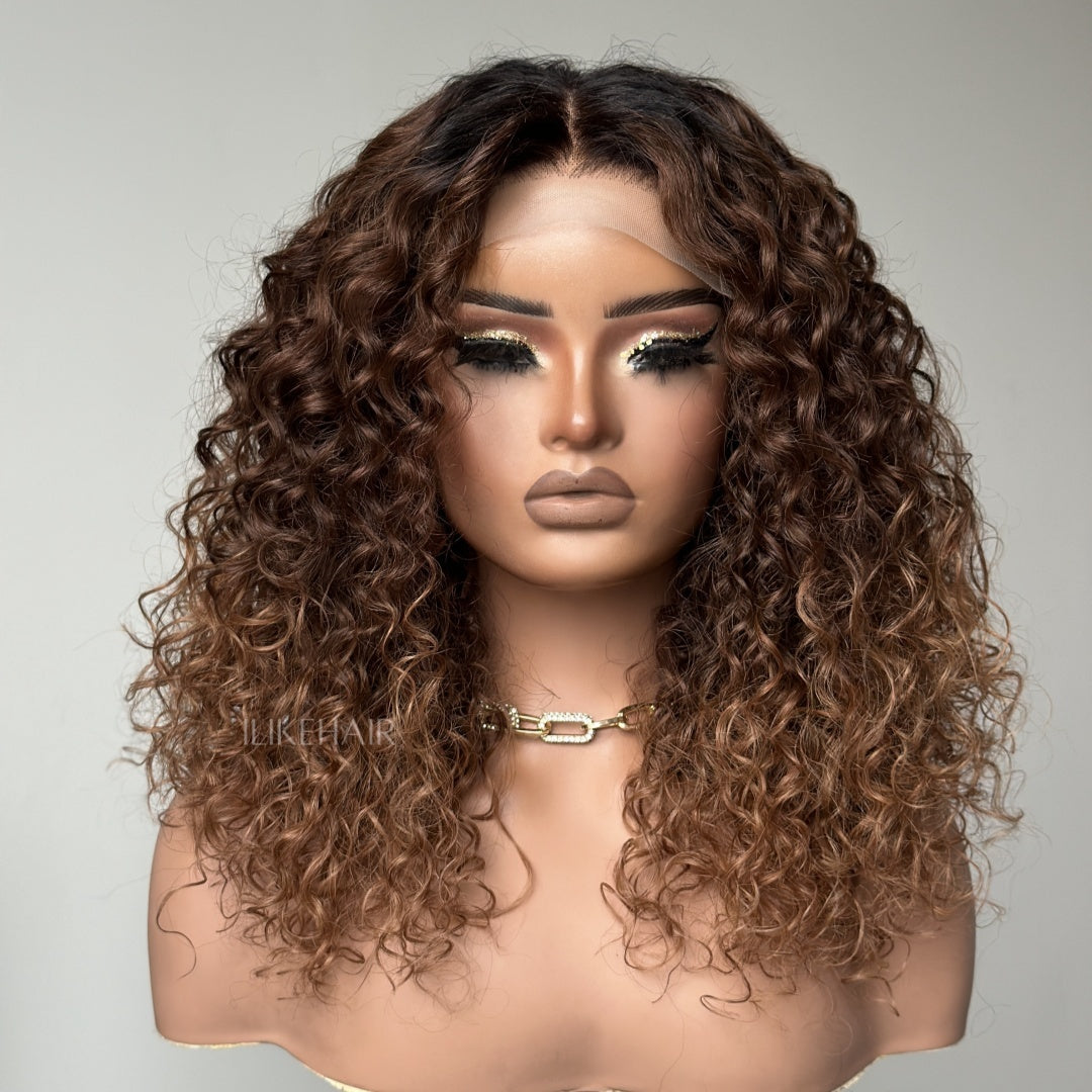 Classic Ombre Chesnut Bouncy Curls Short 5x5 Lace Closure Wig