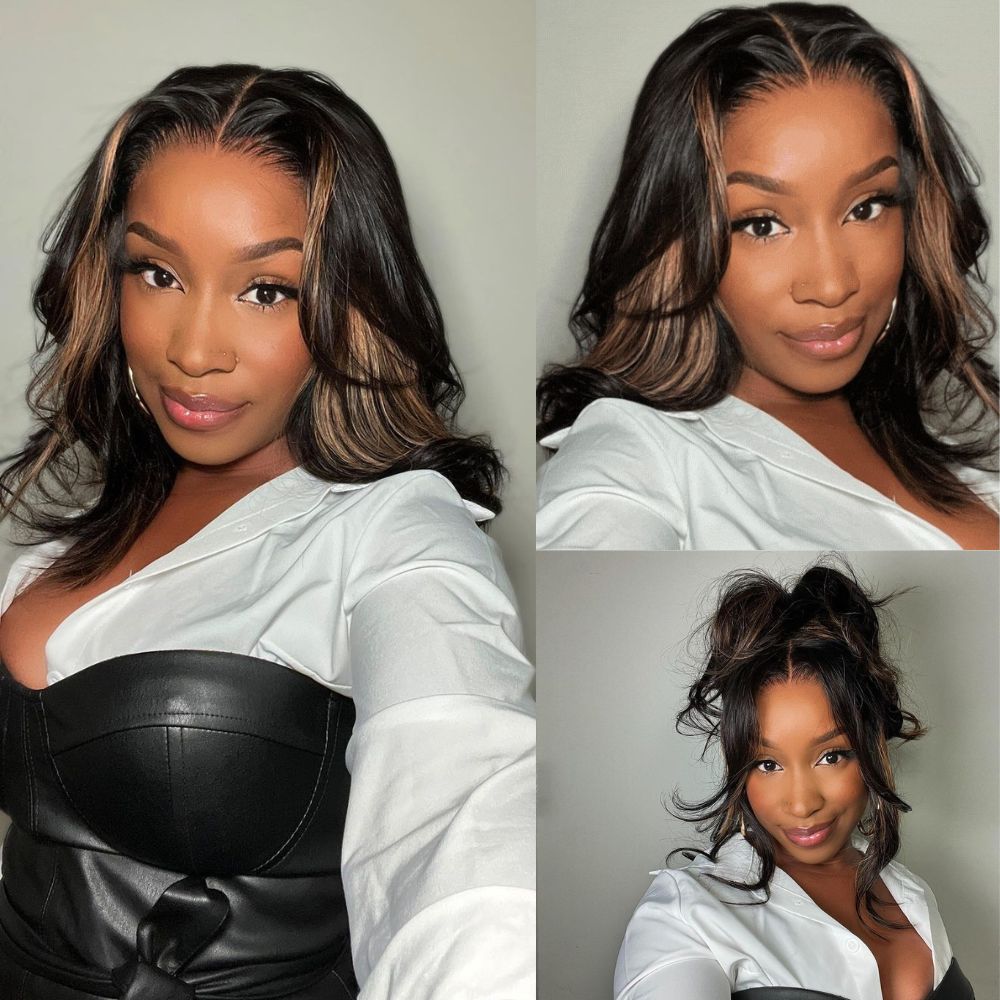 Natural Black with Blonde Highlight Body Wave 5�5 HD Lace Closure Wig