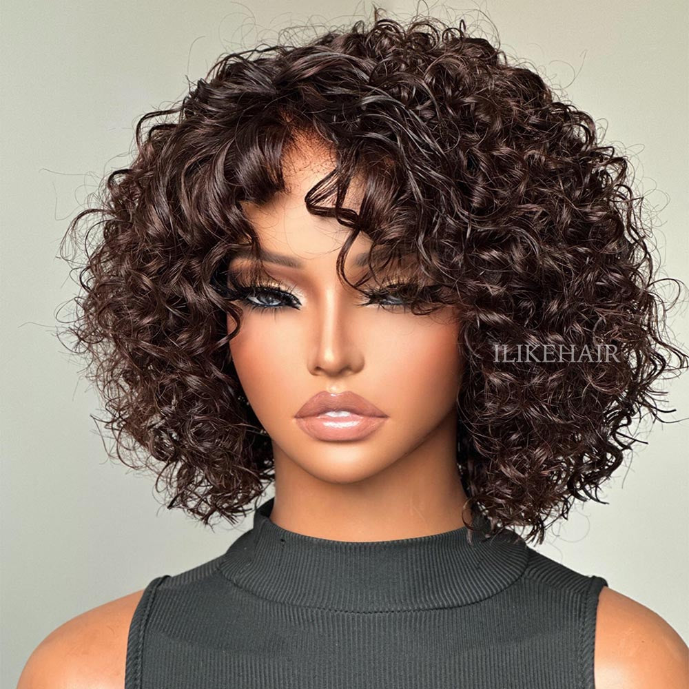 Glueless Dark Brown Short Curly Bob Lace Closure Wig