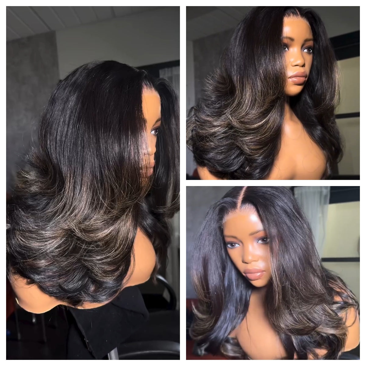Mid-Length Blowout Layered Haircut Glueless 5x5 Lace Closure Wig