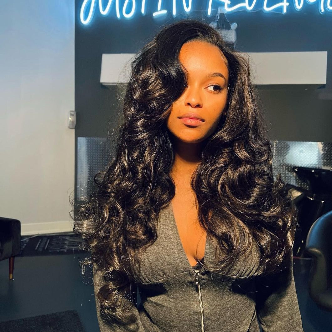 • Layered Cut 5x5 Closure Wavy Glueless Lace Wig Side Bangs Human Hair