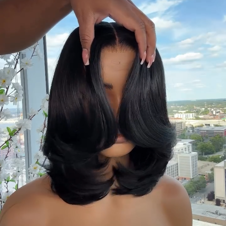 • Natural Black Blowout Layered Cut 5x5 Lace Closure Wig