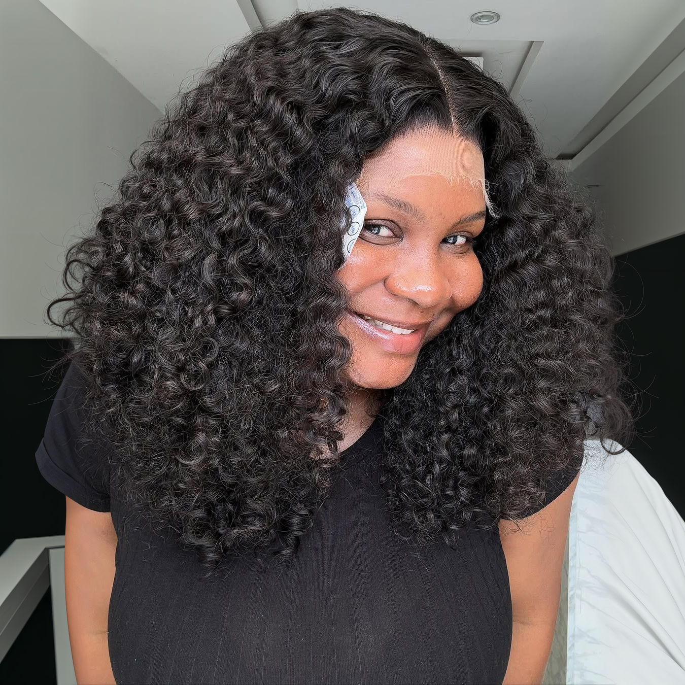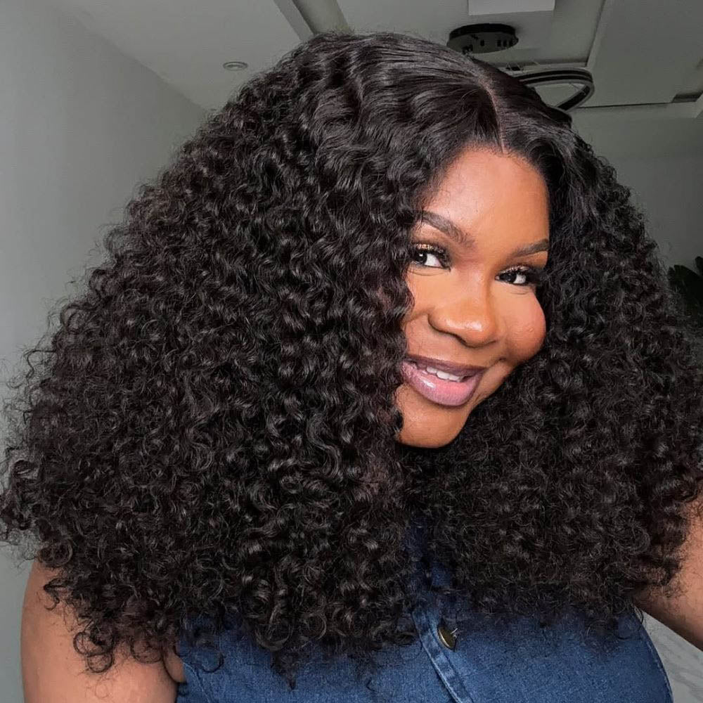 • Natural Black Curly High Density Human Hair 5x5 Lace Closure Wigs