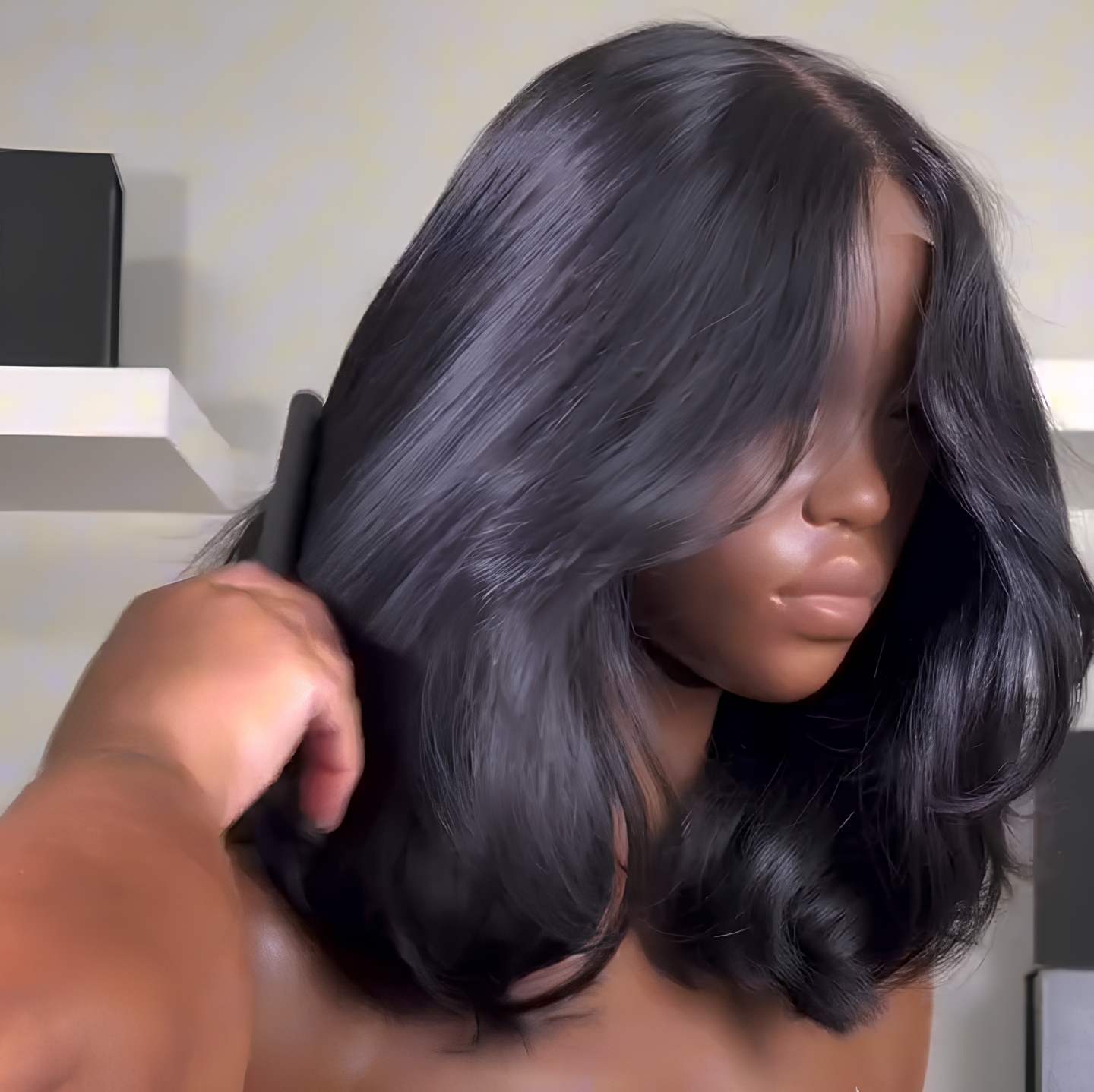 • Natural Black Layered Cut Wave 5x5 Lace Closure Wig
