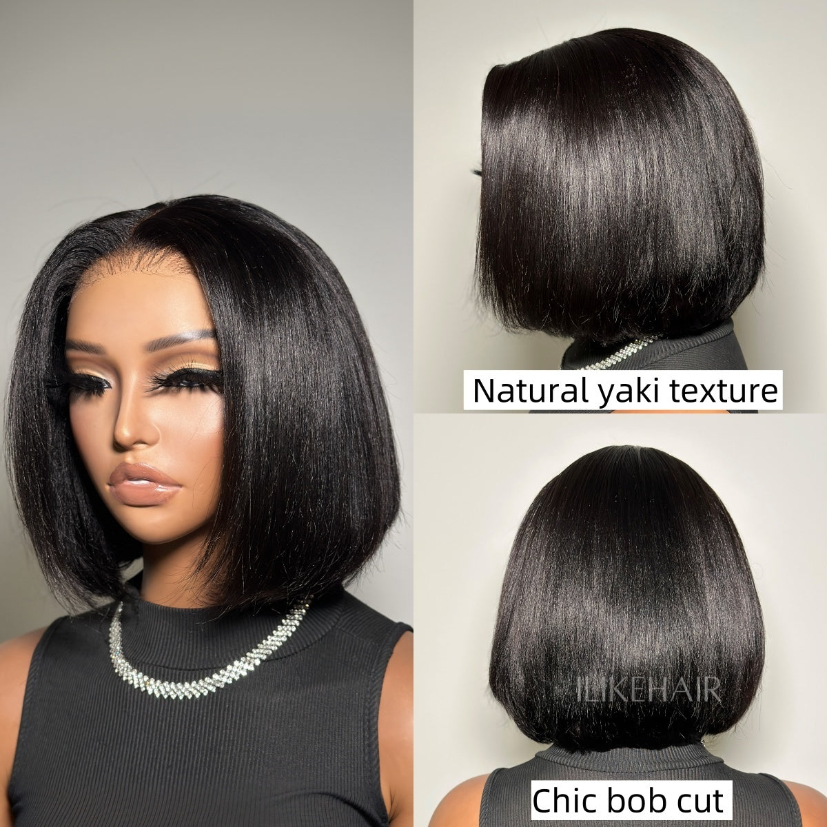 • Put on & Go Yaki Straight Bob Cut Lace Closure Wig